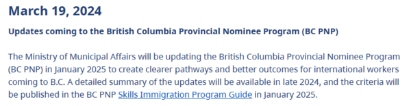 BC省毕业生省提名政策新变化:本科毕业生获利,硕士毕业生难度增加。发表时间:2024-03-27 02:22 ![]() ![]() ![]() 2024年3月19日,BC省宣布将于2025年1月更新本省留学生省提名政策,具体细则将于2024年年底出台。